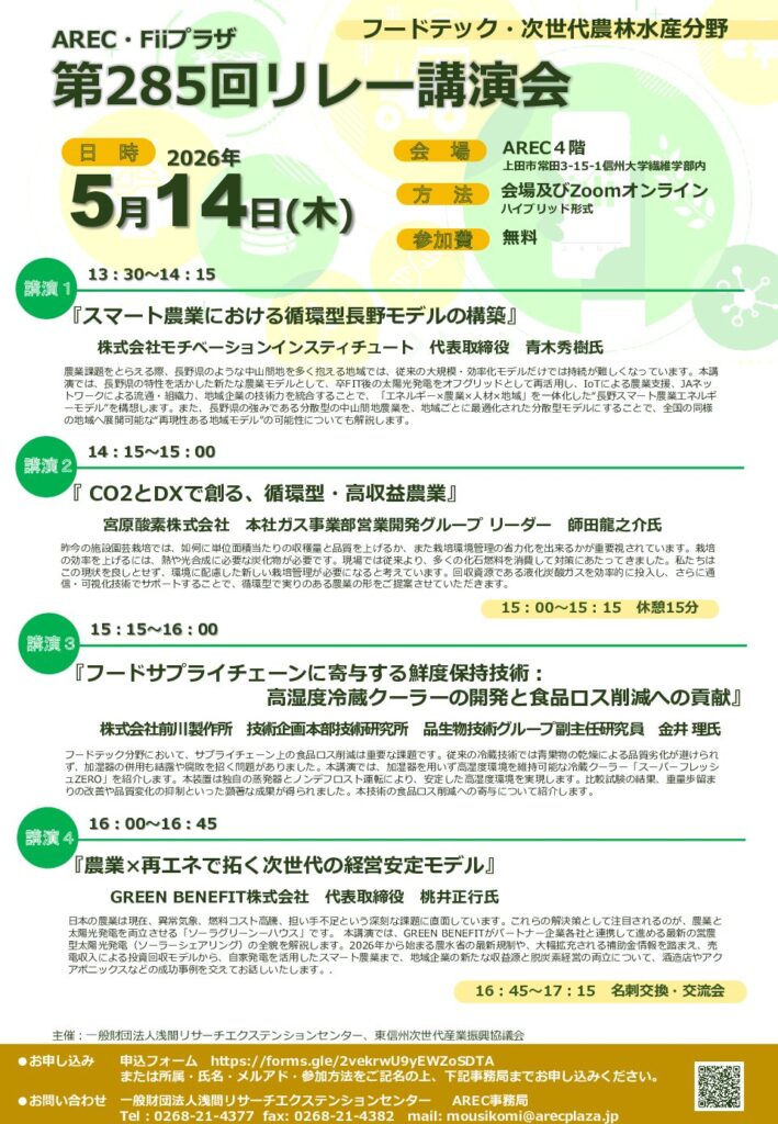 ・5月14日(木) 第285回リレー講演会(フードテック・次世代農林水産)