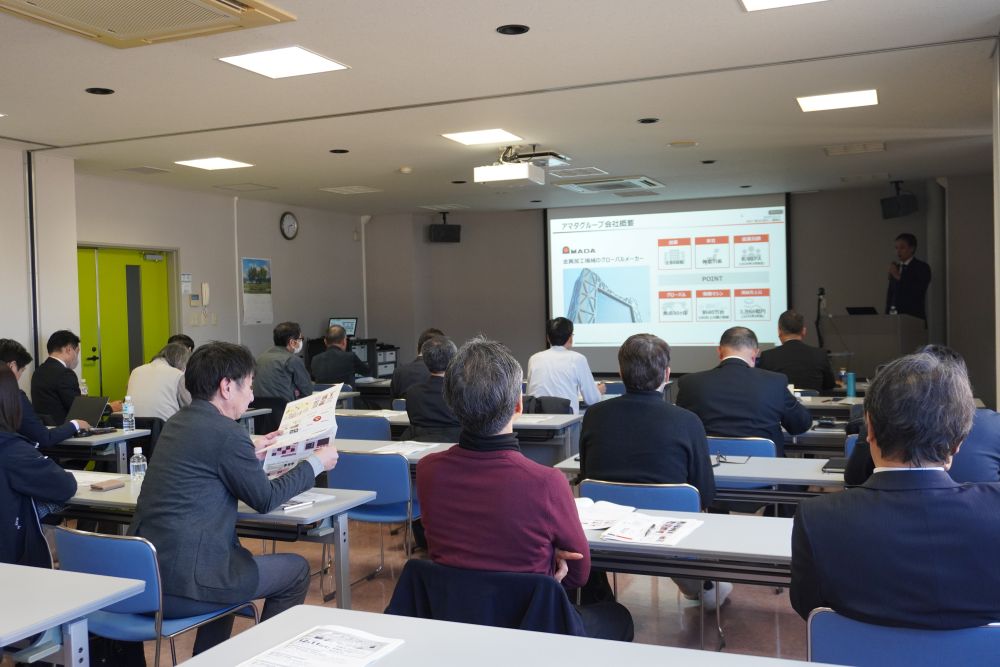 今回は、学術界から工作機械の研究者でいらっしゃいます西口先生、板金加工機のリーディングカンパニーである株式会社アマダ、海外市場の小型建機で圧倒的な評価を誇る株式会社竹内製作所に講演をお願いしました。