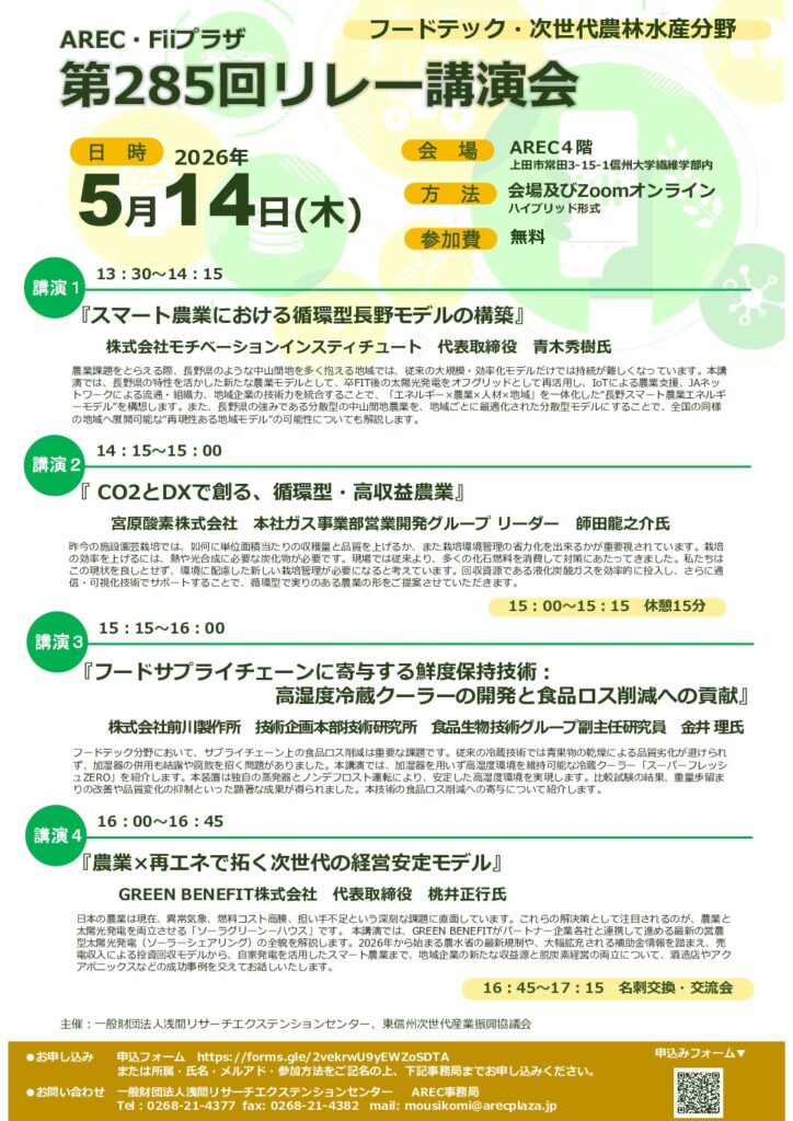 ・5月14日(木) 第285回リレー講演会(フードテック・次世代農林水産)